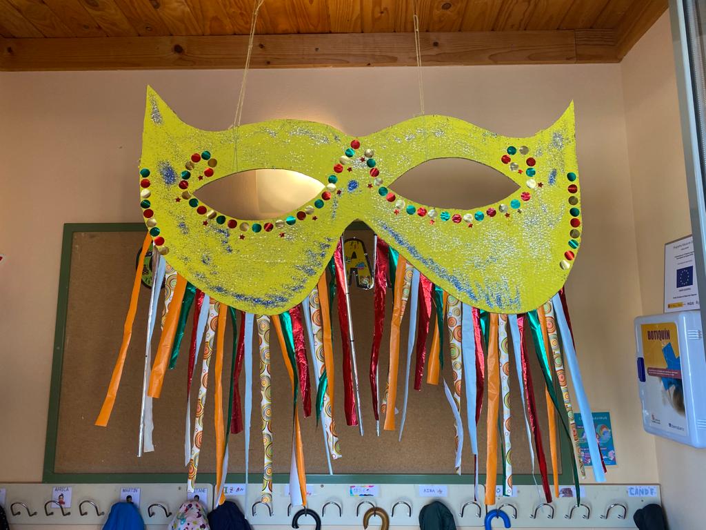 Un curso más celebrando el carnaval en el cole. Nuestros niñ@s han venido guapísimos y han podido disfrutar de un día de diversión, chocolatada, color y risas. También han realizado varias manualidades para decorar el centro. Un gran antifaz que nos ha dado la bienvenida y una puerta maravillosa que resume la esencia de esta celebración. |